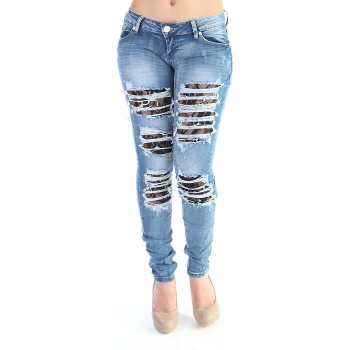 Initialement, il s’agissait de créer de légers trous au niveau des genoux juste idée de le rendre urbain et anti-conformiste. Puis les années ont passé, et les envies de personnalisation des utilisateurs grandissantes. Le Jeans a commencé à subir des mutilations: poches déchirées au niveau du posterieur laissant apparaitre les bas; trous au niveau des cuisses et du genou… On se retrouve alors avec un pantalon déchiré. Pourtant il ne s’est pas fait tout seul car l’on connait le Denim (tissu du Jeans) résistant aux différents lavages et au quotidien de la vie.